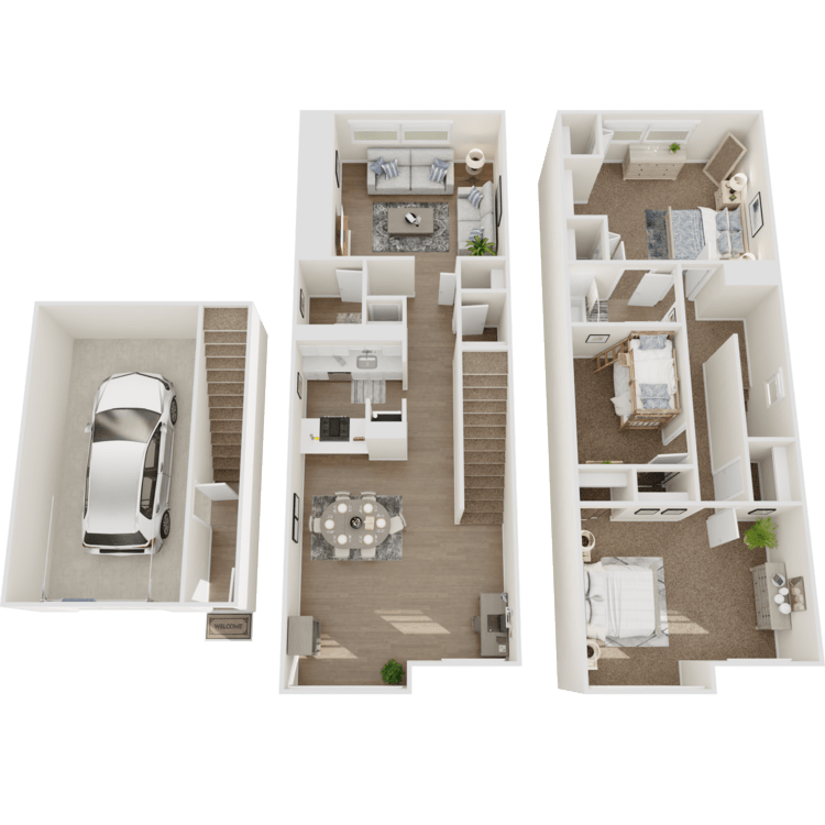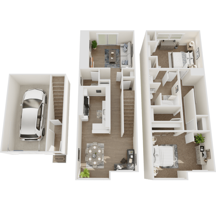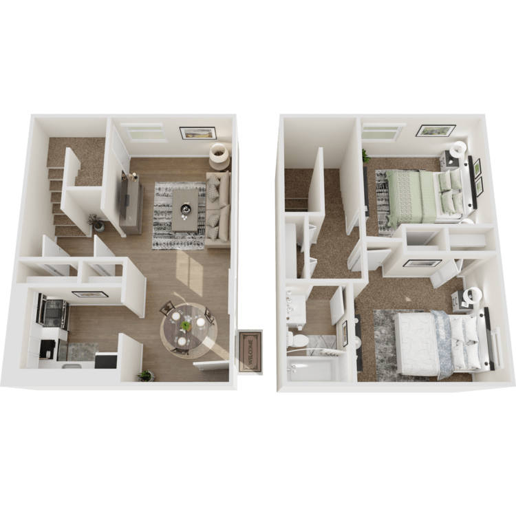 Our one and two-bedroom lofts, along with two and three-bedroom townhomes for rent, offer a refined collection of amenities designed to enhance your lifestyle. Choose from fourteen unique floor plans, featuring both classic and newly renovated designs to suit a variety of preferences. Upgraded homes highlight spacious, modern kitchens with a full appliance package, ideal for hosting or everyday meals. Every home features ample storage and a defined dining space, with select residences also offering a wood-burning fireplace, an attached garage, and a yard for added distinction.