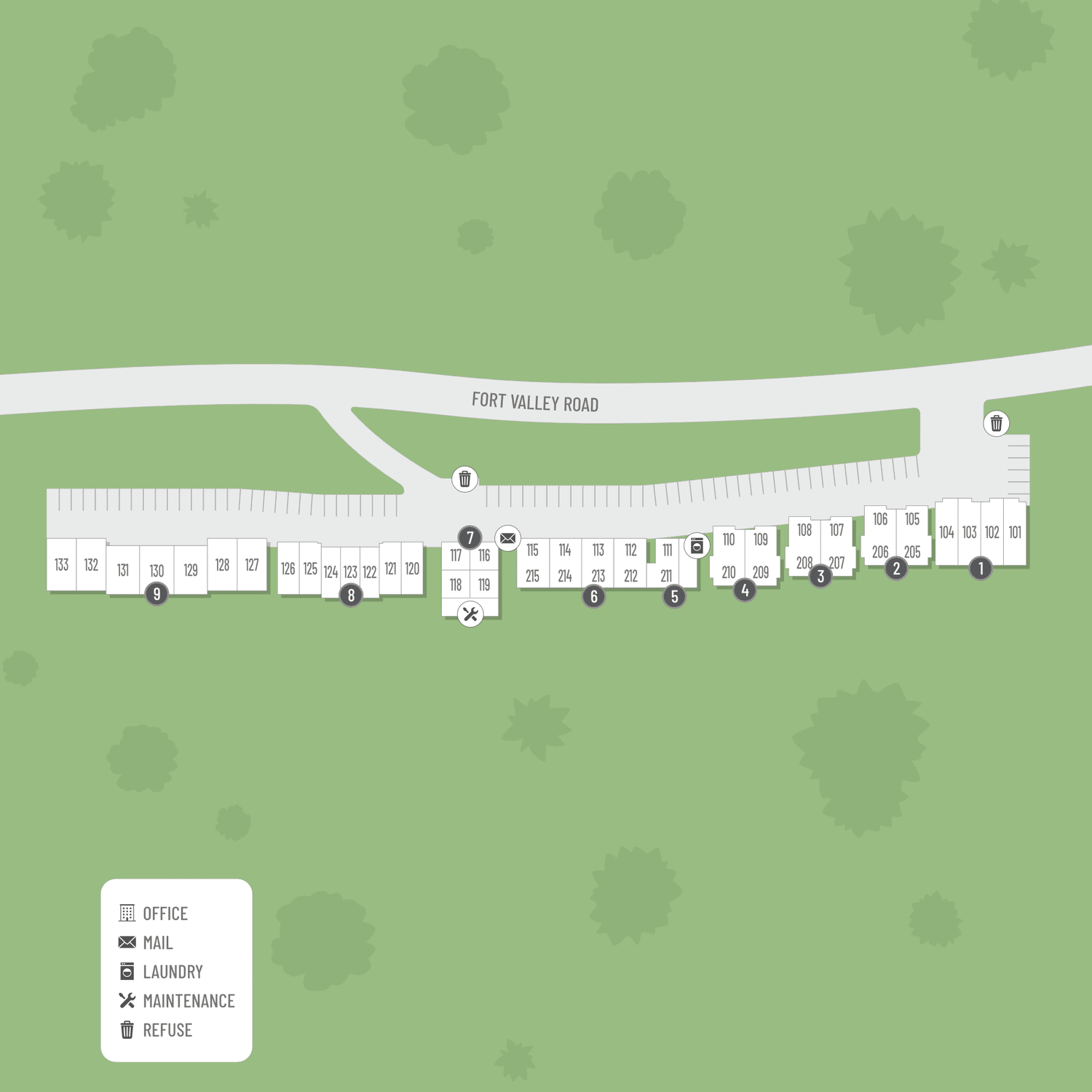 Select a floor plan or bedroom count to view those units on the overhead view on the site map. If you need assistance finding a unit in a specific location please call us at 928-714-6882 TTY: 711.